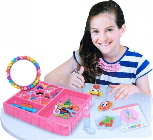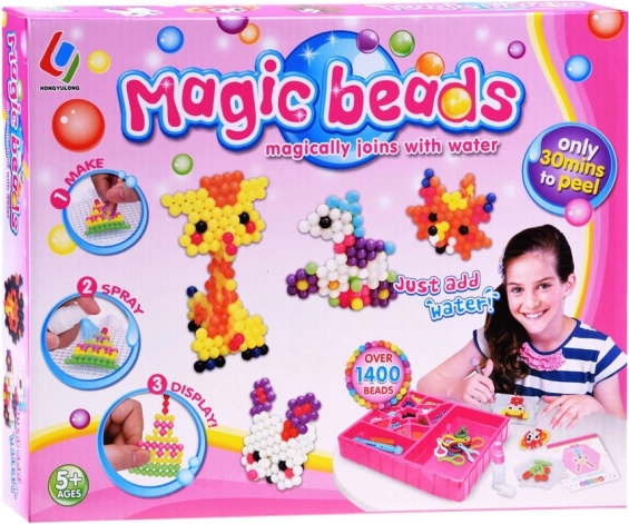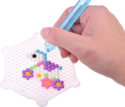 Avec ce kit créatif, enfants comme adultes peuvent réaliser des décorations colorées de manière simple et amusante. Il suffit de choisir un motif dans le livret fourni, d’assembler les perles selon le gabarit puis de les pulvériser avec de l’eau pour les fixer.