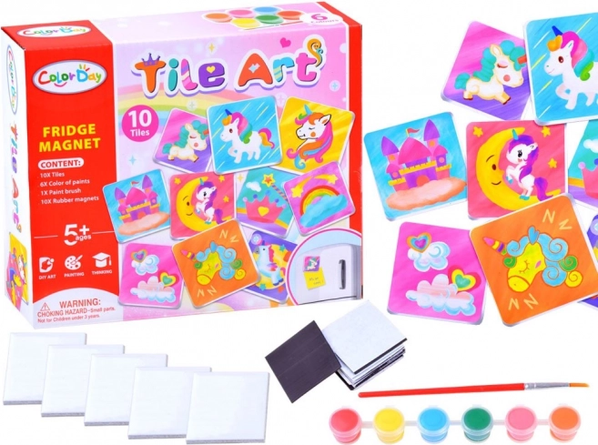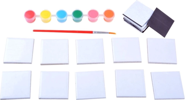 Le kit comprend tous les composants nécessaires pour créer dix magnets – des carreaux aux peintures en passant par le pinceau. Les enfants peuvent ainsi se plonger immédiatement dans l’activité créative.