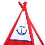 Ce teepee arbore une combinaison de couleurs rouge et blanc accrocheuse avec un motif d’ancre marine, offrant aux enfants un espace de jeu thématique et amusant.