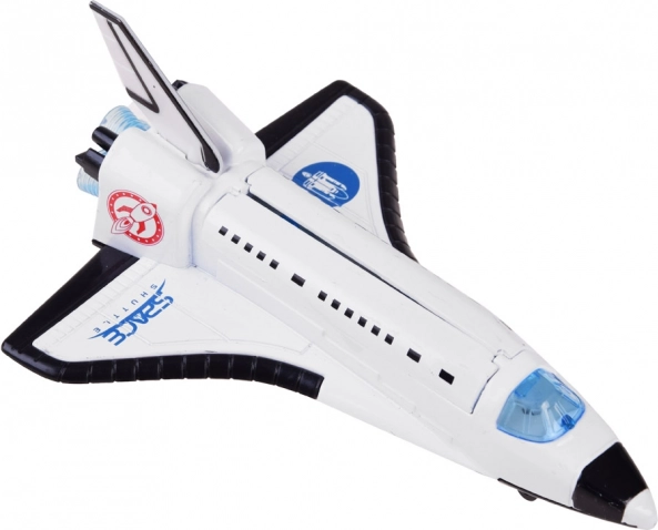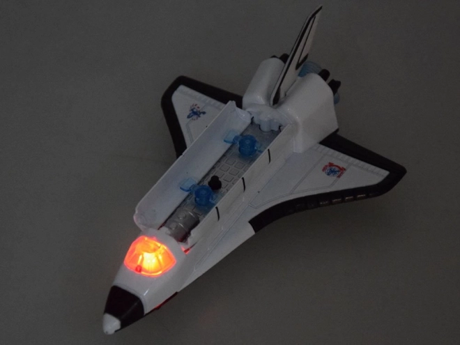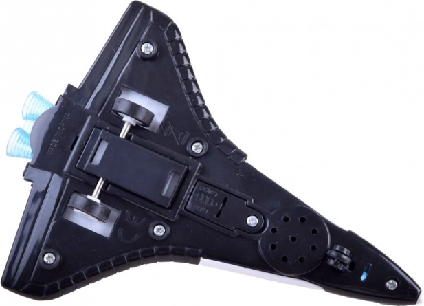 Ce vaisseau spatial est le rêve de tout jeune passionné de l'espace. Avec sa combinaison de métal et de plastique, il offre des effets lumineux et sonores réalistes, activées par un bouton situé sous la partie ouvrante de l'appareil. En appuyant, vous entendrez le son du moteur de fusée et une lumière rouge s'allume dans la cabine de pilotage.