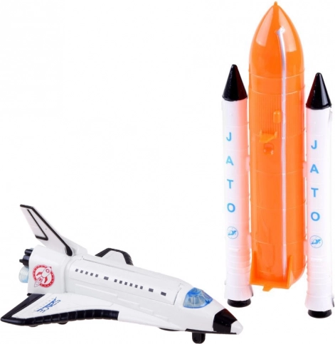 Le set comprend un module de navette de dimensions 15 cm x 10,5 cm x 6 cm et un réservoir principal avec fusées auxiliaires de dimensions 22 cm x 7 cm x 4 cm.