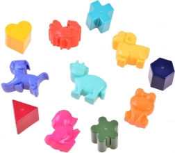 Le set comprend 11 blocs 3D différents (formes et animaux) à insérer dans les ouvertures correspondantes, ainsi qu’une ouverture en caoutchouc pour deviner les formes au toucher. Le jouet stimule naturellement la curiosité, l’exploration autonome et la perception sensorielle.