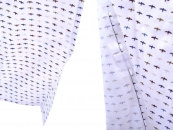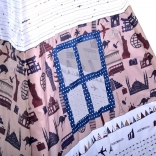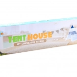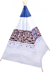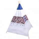 La tente est conçue avec une combinaison de motifs blancs, bleus et bruns, offrant un look ludique et séduisant.