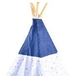 Le tipi pour enfants se monte facilement grâce aux perches en bois, qui assurent stabilité et esthétisme.