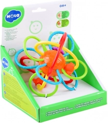 Les anneaux entrelacés en plastique flexible se tiennent bien dans les petites mains, entraînent la préhension et la coordination œil–main dès les premiers mois.