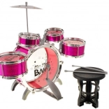 Batterie pour enfants 5 pièces avec tabouret – Rose