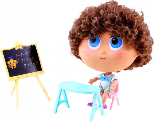La charmante poupée professeur Tymek pour les jeux de « école » apporte aux enfants beaucoup d’imagination et de plaisir. L’ensemble comprend un tableau, une table et une chaise. La poupée possède des articulations mobiles et une tête rotative à 360°, de grands yeux bleus, des taches de rousseur et des cheveux bouclés. Idéal pour les jeux de rôle et le développement de la créativité.