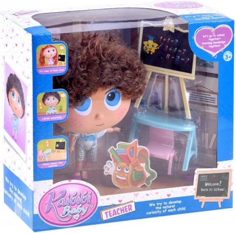 - Contenu de la boîte : poupée professeur Tymek, tableau, table, chaise