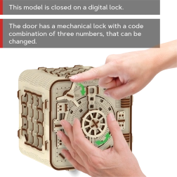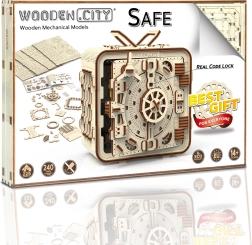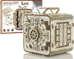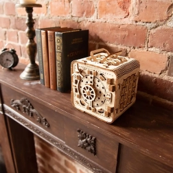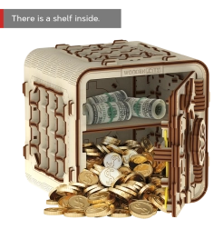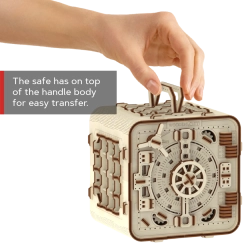 Le coffre-puzzle 3D de Wooden City est un cadeau idéal pour les amateurs d’énigmes et de beaux designs. Ce modèle fonctionnel reproduit le mécanisme d’un coffre-fort bancaire avec une combinaison à trois chiffres, modifiable à tout moment. Le coffre comprend aussi une fonction secrète pour vous aider en cas d’oubli du code. Son look est complété par une poignée pour un transport aisé et un espace à étagères à l’intérieur.