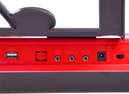 Ce clavier rouge moderne est un excellent choix pour les enfants et les musiciens débutants. Grâce à ses 61 touches de taille standard au jeu souple, il est facile à maîtriser et motive à pratiquer régulièrement. Le microphone intégré apporte le côté karaoké, tandis que l’entrée USB permet de lire vos accompagnements préférés au format MP3.