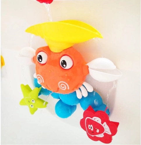 Le crabe coloré avec fontaine transforme chaque bain en un spectacle aquatique amusant. Il suffit de verser de l’eau dans le réservoir sur la tête – les roues tournent, les yeux et les pinces bougent, et une petite fontaine jaillit de la bouche du crabe. Le jouet se fixe facilement grâce à de puissantes ventouses sur le carrelage, la baignoire ou les portes de douche.