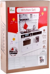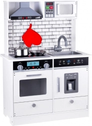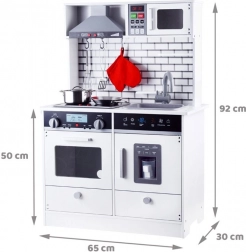 Cette belle cuisine en bois est équipée de tous les appareils nécessaires pour permettre aux enfants de cuisiner les plats les plus délicieux. Le style en blanc avec des carreaux modernes s'harmonisera parfaitement dans n'importe quelle chambre d'enfant ou coin cuisine.