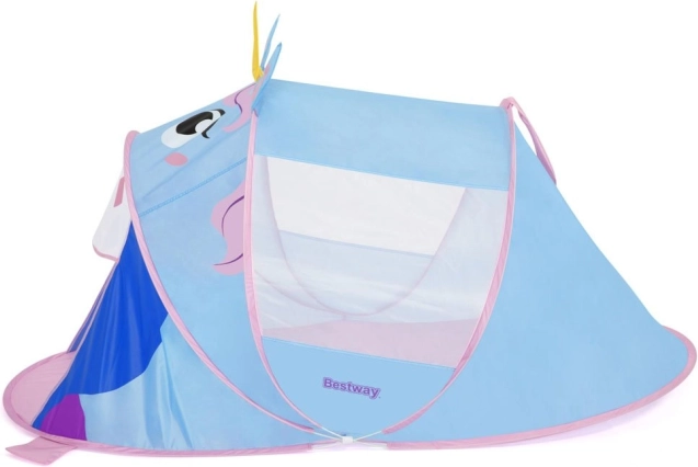 Adorable tente pop-up pour enfants en forme de licorne de la marque BESTWAY, qui transformera toute chambre, jardin ou plage en royaume féerique. Grâce à son déploiement instantané, à son matériau léger et à ses fenêtres en mesh pour l’aération, elle est idéale pour les jeux créatifs comme pour le repos. Le tapis de sol assure un environnement propre et confortable et les dimensions 182 × 96 × 81 cm offrent suffisamment d’espace pour jouer et faire une petite sieste.