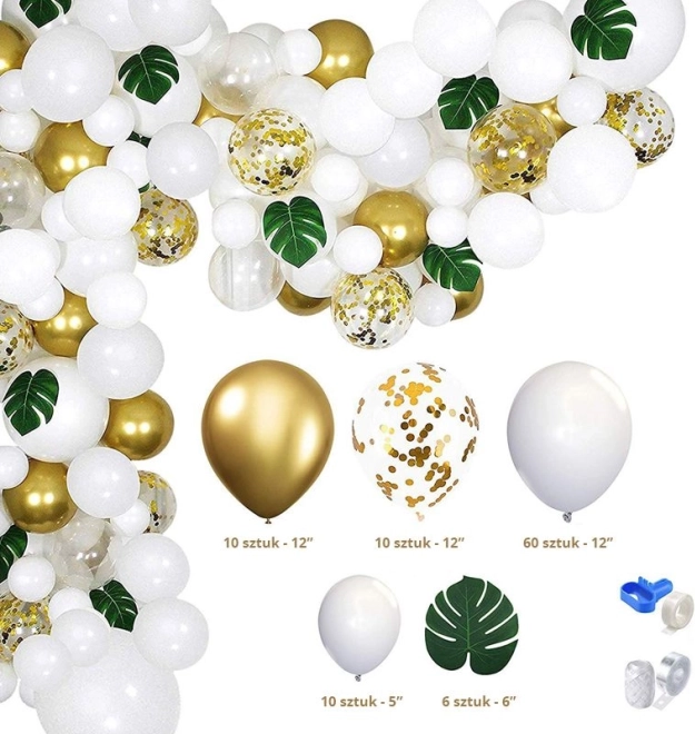 Guirlande de ballons 90 pcs – or blanc + feuilles