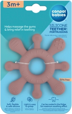 - Soulagement lors de la poussée dentaire – les reliefs texturés massent délicatement les gencives.