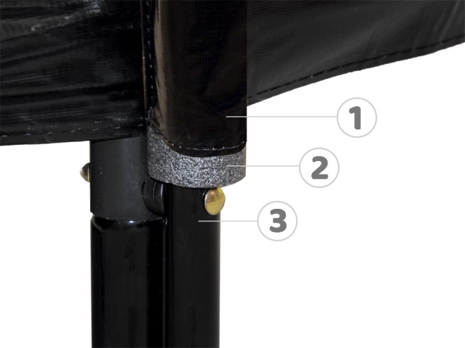 Le filet textile haut avec fermeture éclair et boucle empêche les chutes, tandis que les montants sont recouverts d’une mousse souple pour une sécurité maximale pendant le saut.