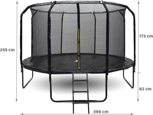 Faites de votre jardin un lieu de plaisir et d’activité saine. Le trampoline SKYFLYER 366 cm associe une construction robuste à des éléments de sécurité intelligents : filet de protection intérieur avec anneau de tension, montants profilés rembourrés et entrée double sécurité avec fermeture éclair et boucle. La surface de saut en Jumping Mat PP durable est multipiquée (8 coutures), garantissant une longue durée de vie même en cas d’utilisation intensive.