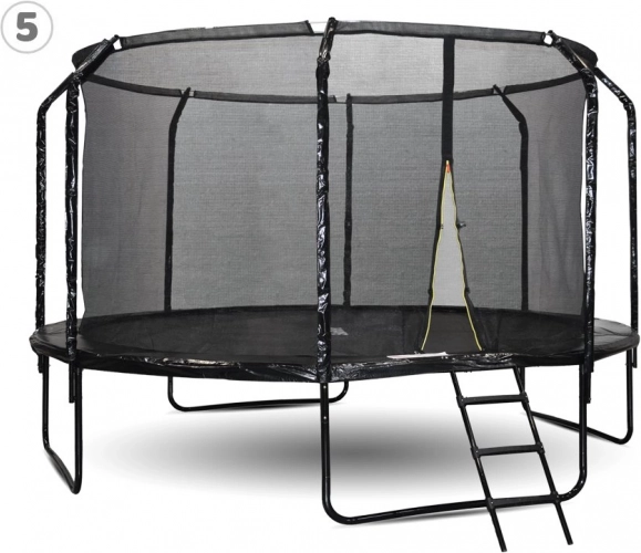La surface de saut en polypropylène de haute qualité est cousue plusieurs fois (jusqu’à 8 coutures) et complétée par des ressorts oxydés recouverts d’un bord de protection. La stabilité est assurée par des pieds en U avec vis montées à l’intérieur de la structure, laissant l’extérieur lisse et sûr. Le colis comprend également une échelle, des ancres avec sangles de tension et une bâche imperméable pour une utilisation et un entretien simplifiés.
