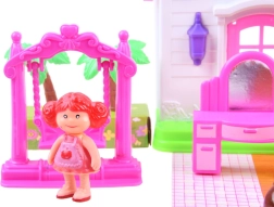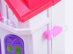 La maison pliante séduit par ses couleurs vives et ses finitions détaillées – la façade est ornée de reliefs de petites fleurs et d’oiseaux. Une fois ouverte, elle offre un espace de jeu clair où les enfants disposent facilement le mobilier. Les figurines de la maman, du papa et de la fille ont des bras articulés et une tête pivotante, pour multiplier les jeux de rôle. La sonnette avec effet lumineux annonce l’arrivée des visiteurs et apporte à l’ensemble le charme d’une vraie maison.