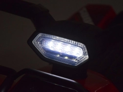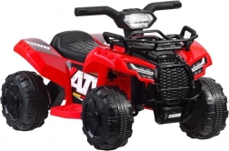 Ce mini quad sportif pour les tout-petits est un excellent choix pour les premières sorties. Grâce à ses dimensions compactes, il trouve facilement sa place dans un appartement et gère tout aussi bien les trottoirs lisses ou la cour. Le démarrage se fait en appuyant sur le bouton rouge situé sur la poignée, et le panneau de commande propose des effets sonores et un klaxon pour encore plus d’amusement.
