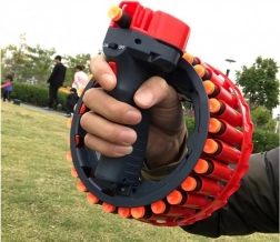 • Grande capacité : 28 fléchettes en mousse dans le chargeur circulaire de chaque blaster.