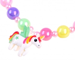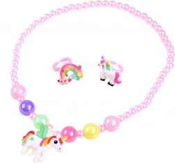 Un collier coloré en perles avec pendentif licorne et deux bagues complètent le costume et stimulent le jeu magique.