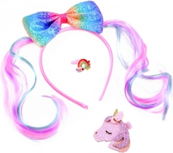 Set de coiffure pour fille avec nœud arc-en-ciel scintillant, licorne et bague