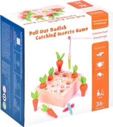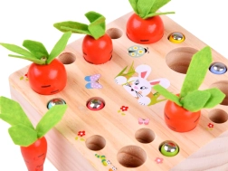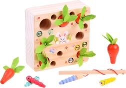Le jeu en bois avec carottes et vers est conçu pour les tout-petits, attirant grâce à ses couleurs vives et ses motifs joyeux. Les enfants peuvent récolter les carottes et les vers de façon ludique avec des baguettes magnétiques, ce qui renforce leur coordination œil-main et leur motricité fine.