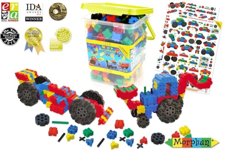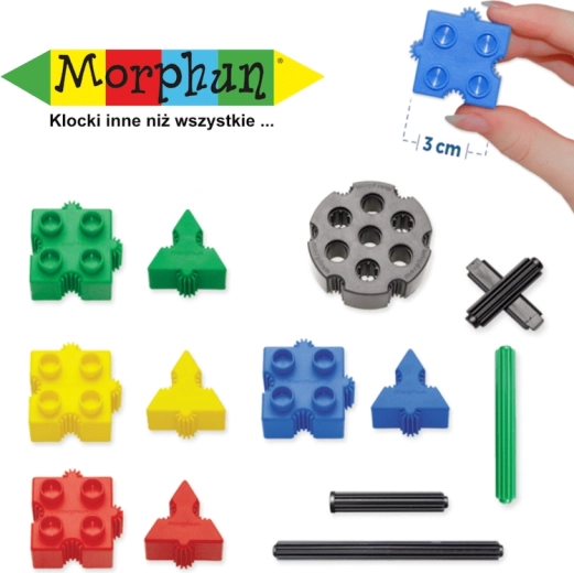 Le système unique MORPHUN permet de relier les pièces verticalement et latéralement comme un puzzle. Il en résulte des constructions 2D et 3D stables avec une très grande variété de modèles.