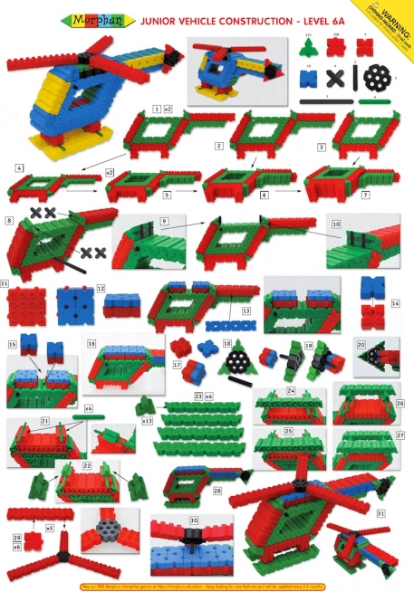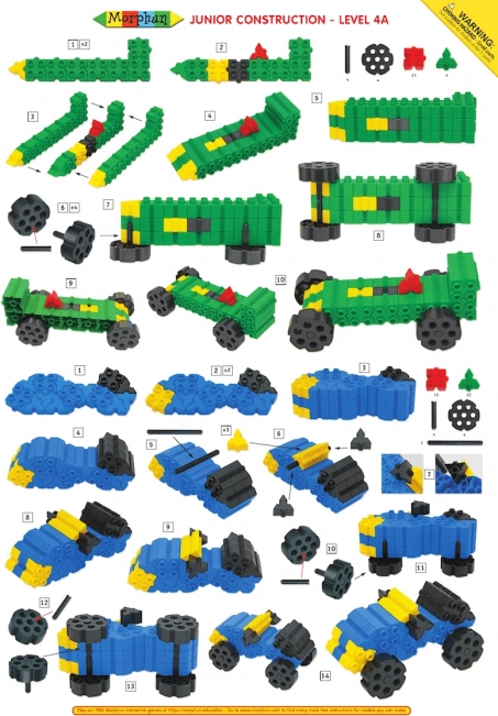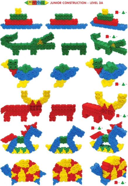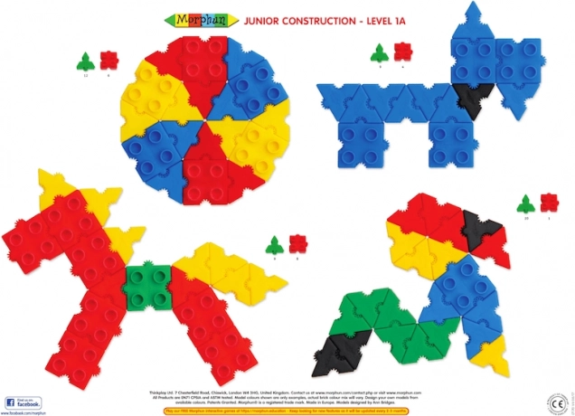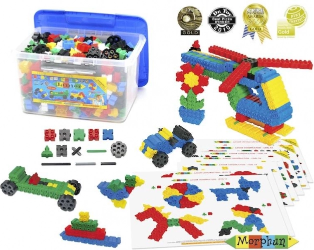 Les briques Morphun Junior comprennent 500 pièces colorées permettant de créer des personnages, des animaux, des machines et d’autres constructions, le tout en 3D. Cela est possible grâce à une méthode d’assemblage unique. Elles peuvent se relier par le haut et par le bas, mais aussi sur les côtés. Dès le début, le jeu est stimulant et plein de nouveaux défis et, une fois les bases des connexions maîtrisées et quelques personnages réalisés, l’imagination spatiale de l’enfant se développe et laissent place à de nouvelles idées personnelles. La boîte contient, en plus des briques, un guide qui facilite la découverte des propriétés des pièces. Un autre avantage du set est son caractère universel, car il peut être mélangé avec des blocs de construction standard..
