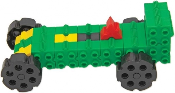 Jusqu’à 12 instructions créatives au format A3 avec des modèles de démonstration attendent les petits constructeurs et bâtisseurs. Tous les modèles peuvent bien sûr comporter des parties mobiles. Des roues font partie du set – elles peuvent aussi être les éléments de constructions telles que des moulins à vent ou des véhicules à plusieurs essieux. Grâce aux caractéristiques uniques des briques, qui permettent des connexions latérales, les premières constructions peuvent être assemblées directement en suivant le guide à l’échelle 1:1.. Un jeu captivant est aussi une forme d’apprentissage, au cours duquel les enfants acquièrent facilement des notions de petite mécanique et de principes de construction. Grâce au grand nombre d’éléments, ce set de briques anglaises permet à un plus grand nombre d’enfants de jouer ensemble – et chacun y trouvera son compte.