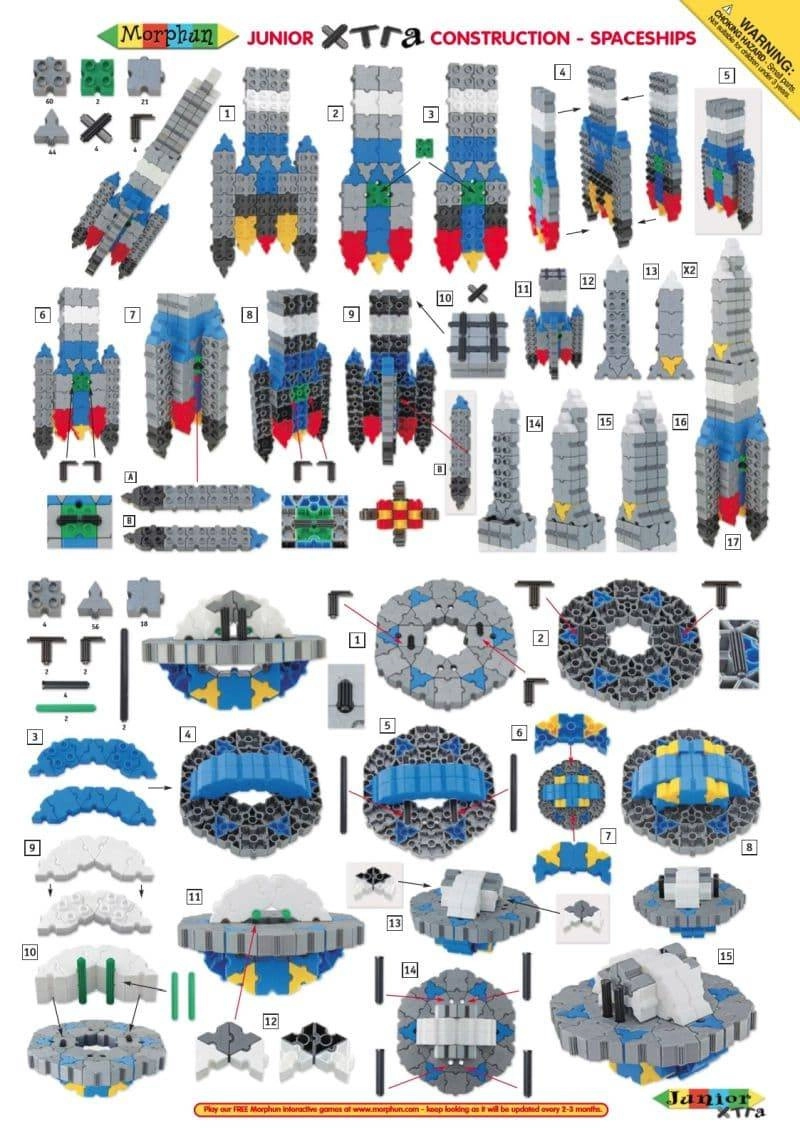 Découvrez un univers créatif avec le jeu de construction Morphun sur le thème de l’espace. Le set de 334 pièces permet aux enfants de construire différents modèles de fusées et de vaisseaux, y compris des pièces spéciales imitant les flammes des moteurs. Sont incluses des instructions détaillées pas à pas sur papier couché A4 et une source d’inspiration sur de grandes feuilles A3. Grâce à leur faible poids, les modèles finis peuvent même être suspendus au plafond. Un excellent cadeau pour les fans d’aventures spatiales.