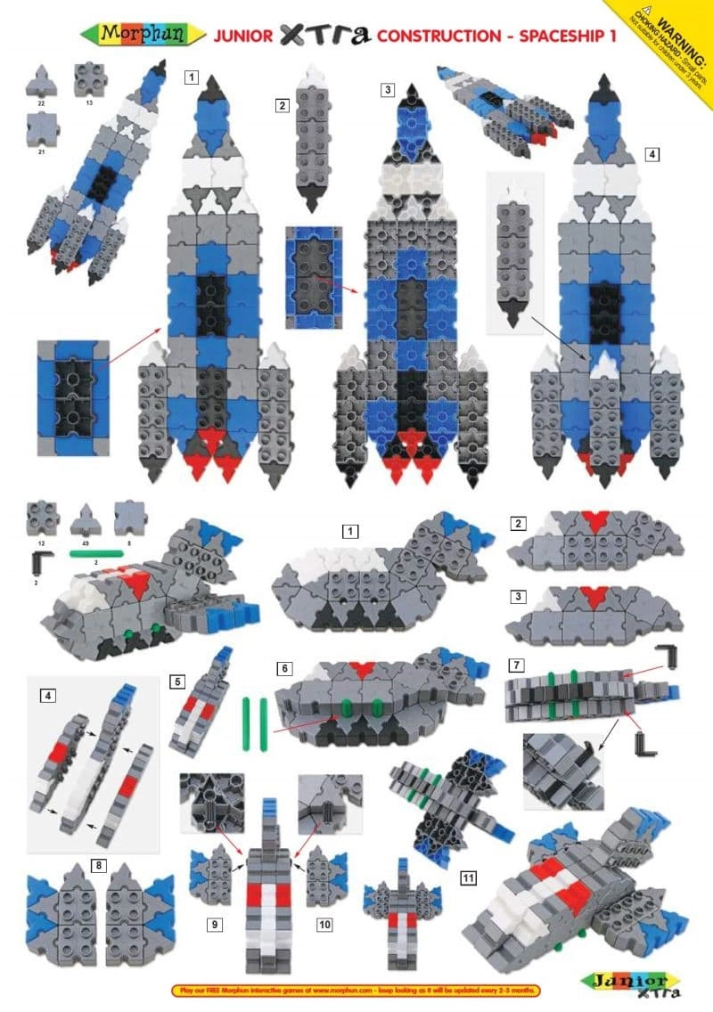 Avec ce set Morphun, les enfants plongent dans le monde des expéditions stellaires et des flottes interstellaires. La boîte contient 334 pièces soigneusement conçues, dont des éléments spéciaux qui imitent les jets de flammes des moteurs arrière des fusées. Le tout stimule l’imagination, la motricité fine et la pensée logique.