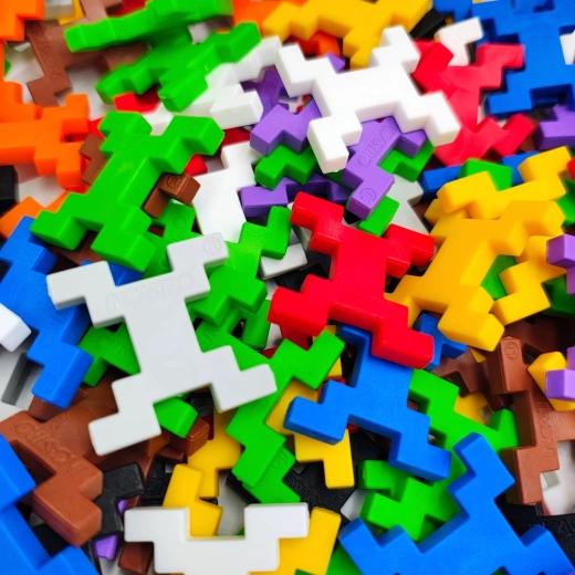 Grand set pour petits et grands bâtisseurs. Un mélange équilibré de couleurs stimule la créativité, le tri et la création de motifs, idéal à la maison comme en maternelle.