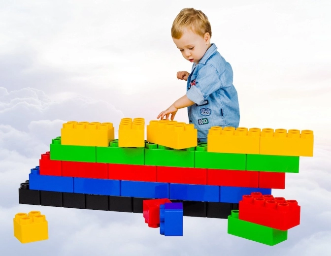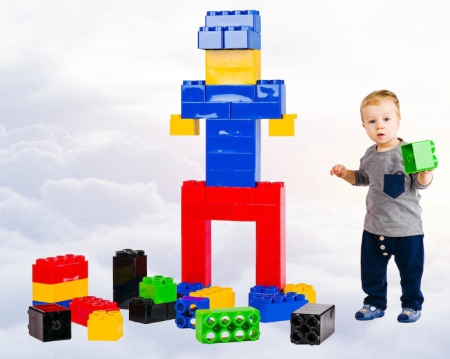 Grâce aux grandes dimensions des briques, les enfants peuvent construire des structures jusqu’à leur propre taille ! Des tours simples aux châteaux complexes en passant par des véhicules – le set évolue avec les compétences de l’enfant. Jouer avec les briques est non seulement amusant, mais enseigne aussi les bases de l’ingénierie, de la géométrie et de la physique.