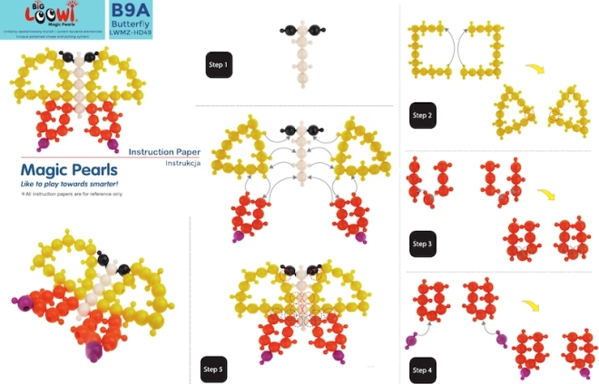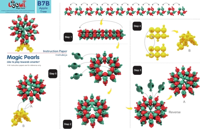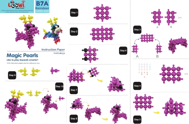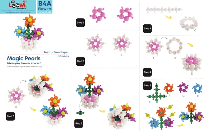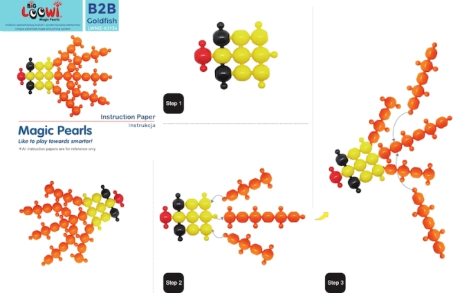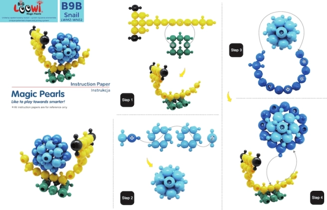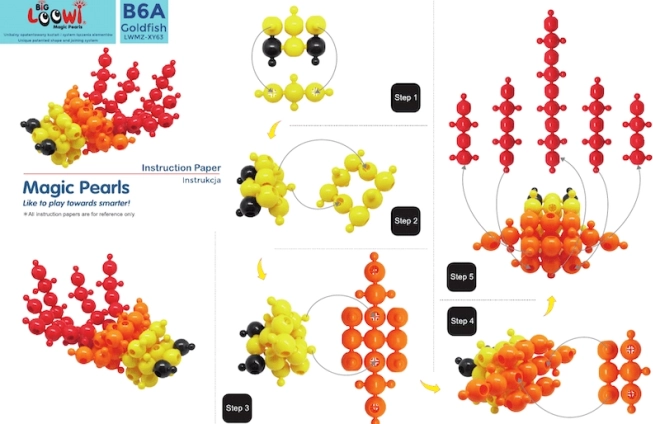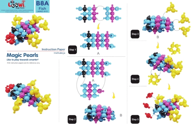 Inclus : 10 guides en couleur au format A4. Les enfants peuvent construire un poisson, un crabe, une tortue, une fleur et d’autres modèles tout en développant leur imagination.