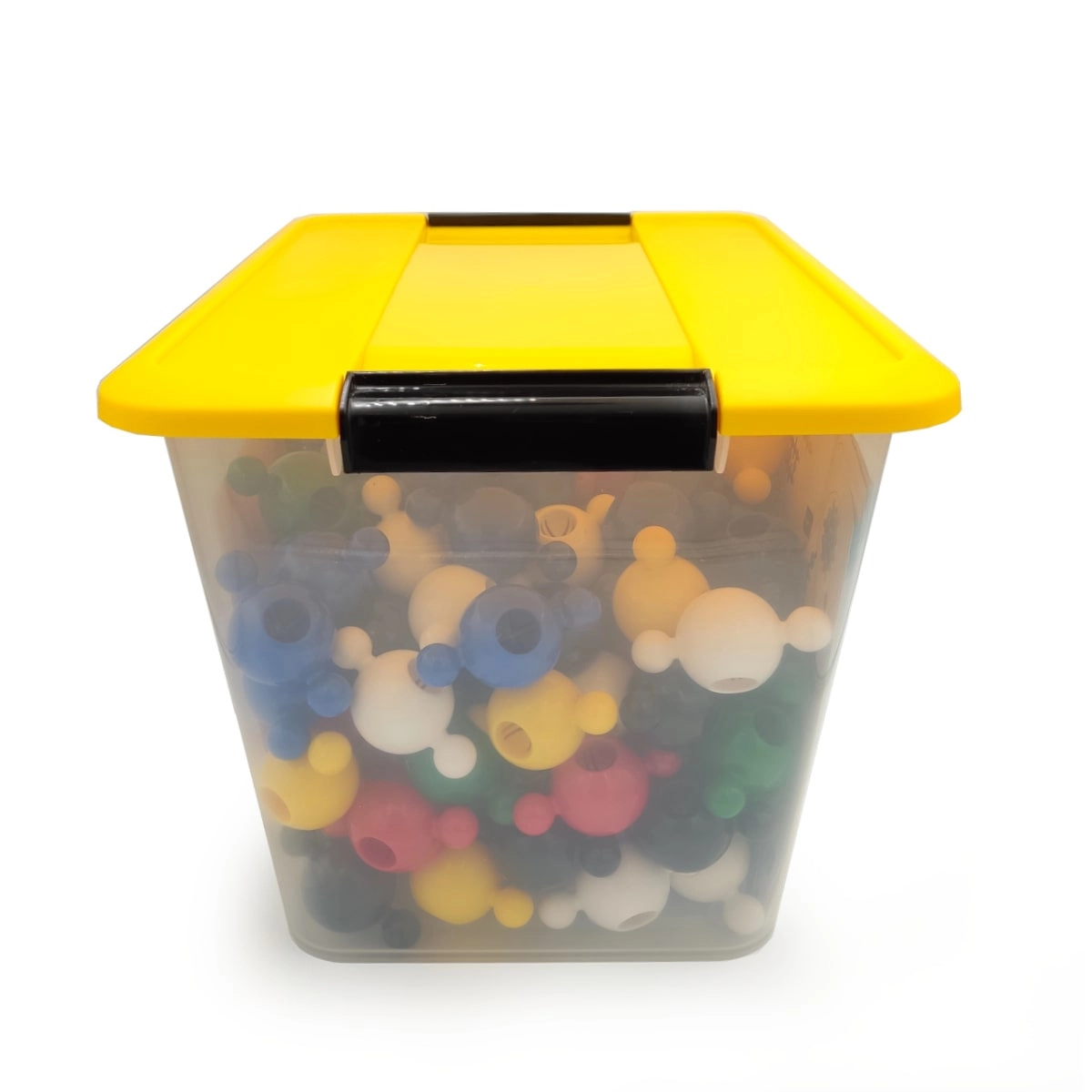 Une boîte transparente avec loquet robuste garde toutes les pièces ensemble. Rangement facile, transport pratique et ordre après chaque jeu.