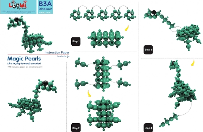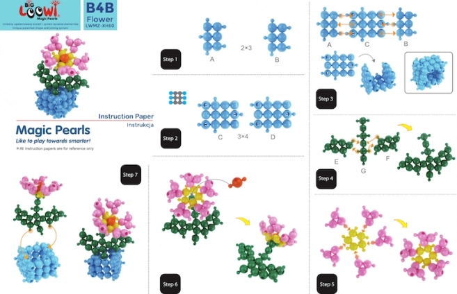 Le set comprend des instructions en couleur avec différents modèles – un excellent point de départ pour les petits créateurs et pour développer l’imagination.
