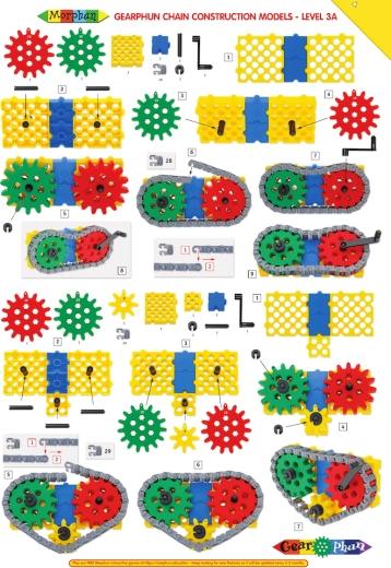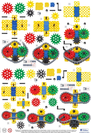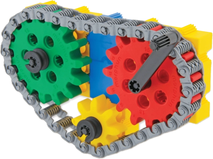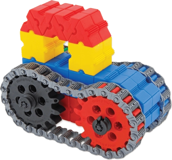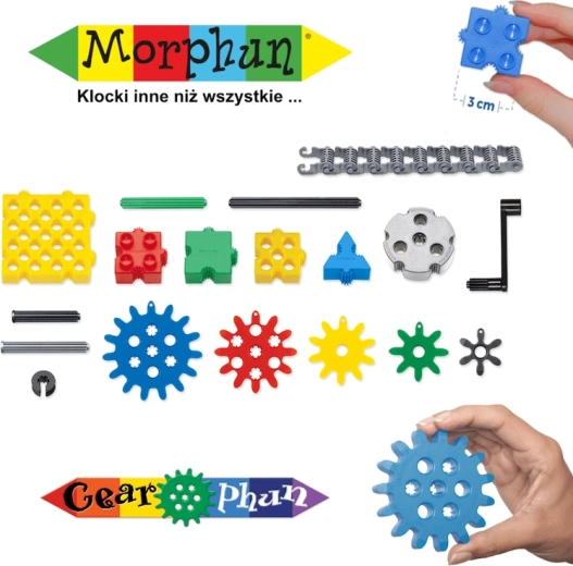 Le set MORPHUN GearPhun apporte des blocs colorés, des roues dentées en 5 tailles, des chaînes, des connecteurs et d’autres éléments pour construire des mécanismes fonctionnels. L’ensemble comprend 4 planches de guides grâce auxquelles les enfants construisent pas à pas des machines, des véhicules et d’autres constructions mobiles – de la pelle à chenilles au rouleau compresseur.