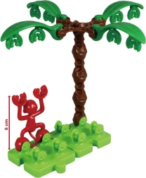 Les plateformes vertes et les pièces en forme de palmier servent de fondations solides pour les constructions. Elles permettent d’étendre facilement la scène et de composer son propre « zoo ».