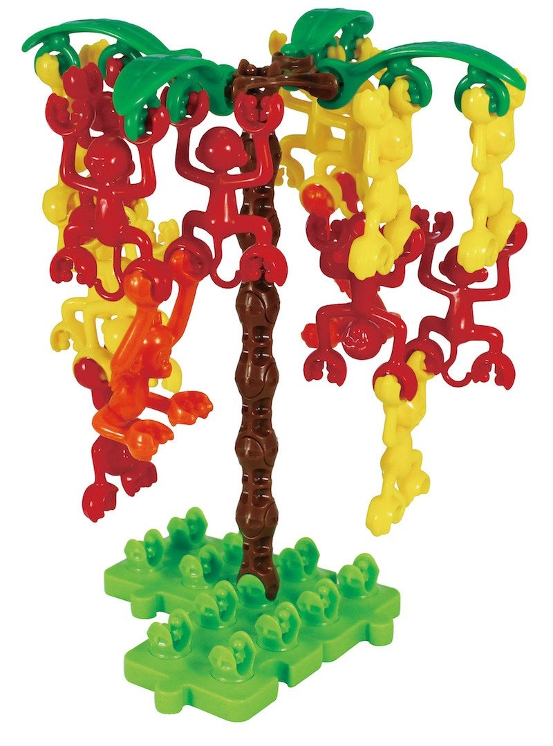 Des petits singes, des serpents et d’autres formes se relient à l’aide de crochets et restent en équilibre. Les enfants peuvent construire des chaînes, des ponts et de hautes tours tout en entraînant leur motricité fine.