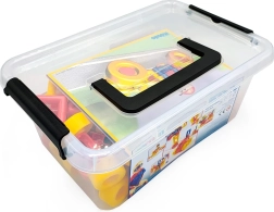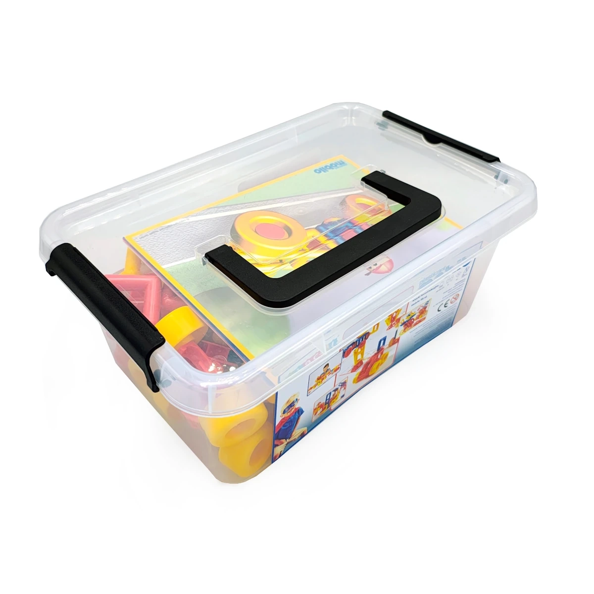 La boîte de rangement transparente avec fermetures sécurisées garde toutes les pièces ensemble, facilite le transport et offre un aperçu rapide du contenu.