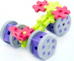 Le coffret comprend 4 axes et 8 roues pour donner vie aux voitures, hélices ou machines. Les enfants découvrent les principes de la mécanique par le jeu.