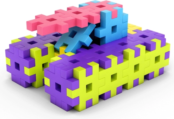 Des avions aux petites voitures en passant par des constructions imaginaires – les enfants peuvent créer diverses formes et s’initier à la logique et à la représentation spatiale.