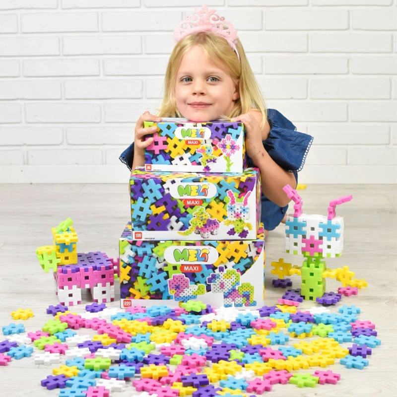 Les pièces MELI MAXI sont robustes, légères et faciles à saisir – parfaites pour des premières constructions sans frustration et avec un maximum de plaisir de réussir.