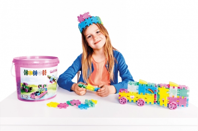 L’édition scintillante CLICS GLITTER apporte des couleurs éclatantes et un assemblage facile qui captive immédiatement les enfants. Avec 175 pièces, créez de charmants modèles comme un petit chien, un sac, un avion, une petite voiture ou des personnages imaginaires. Les connexions à clic, robustes, gardent la forme tout en permettant des reconstructions infinies.