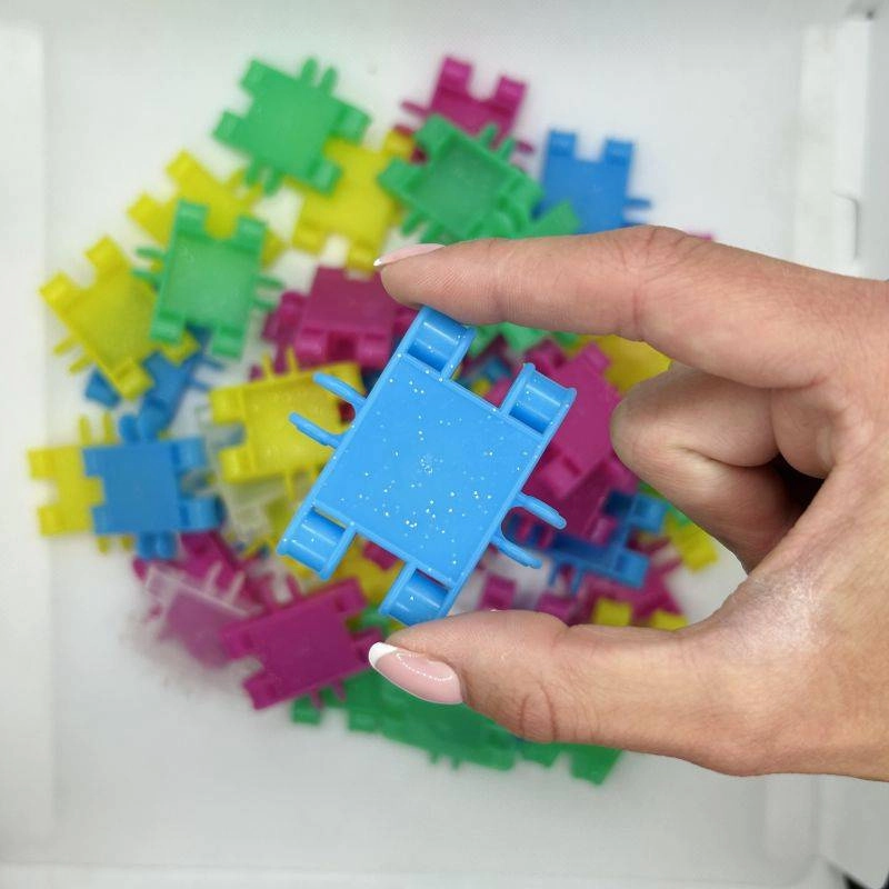 Les pièces pailletées à l’effet brillant donnent un vrai effet WOW à chaque construction et motivent les enfants à créer encore plus.
