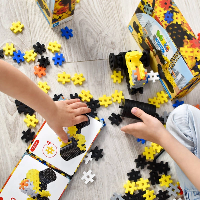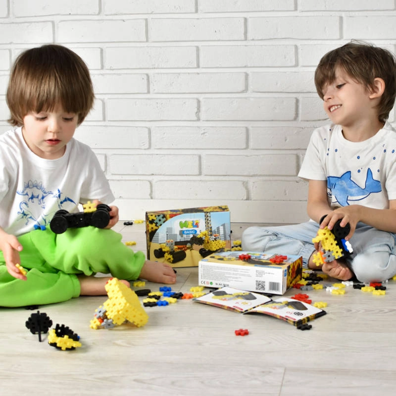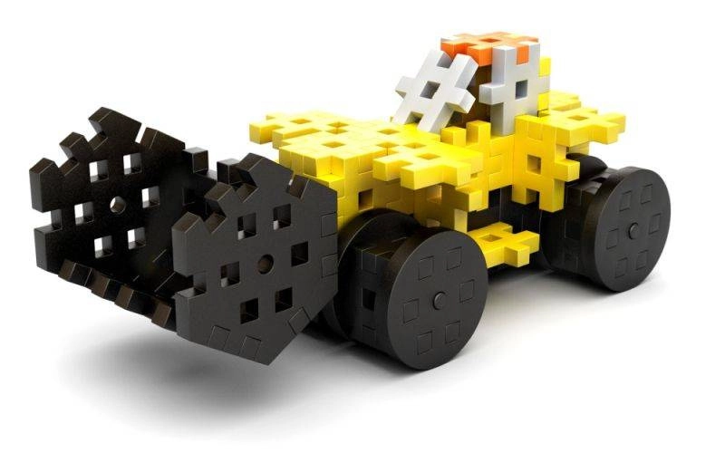 Assemblez une petite pelleteuse sur roues avec bras ou une mini-voiture vive. Un seul set – de nombreux modèles pour développer imagination et motricité.