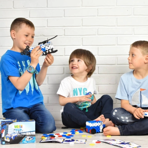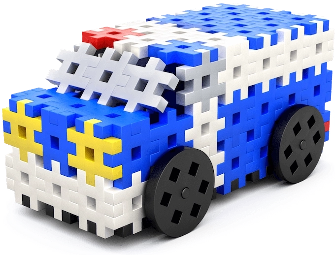 Le set permet de créer des modèles dynamiques – d’une voiture de police robuste à un hélicoptère de secours. Les enfants exercent leur imagination et apprennent à suivre des instructions.