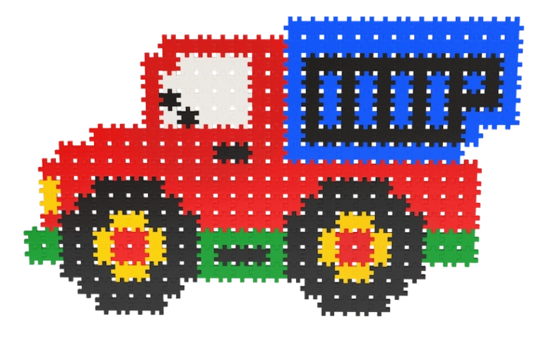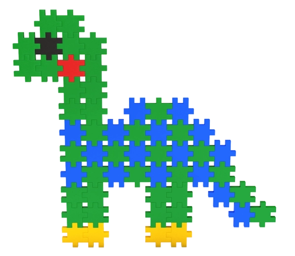 Des pièces plates et uniformes permettent d’assembler des mosaïques et des formes en volume – des animaux aux véhicules. Les enfants entraînent leur imagination, la planification et la motricité fine.